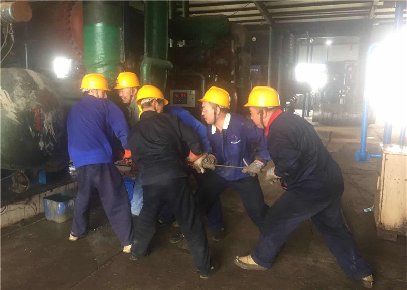 一車間職工齊心協(xié)力清理冰機(jī)換熱器