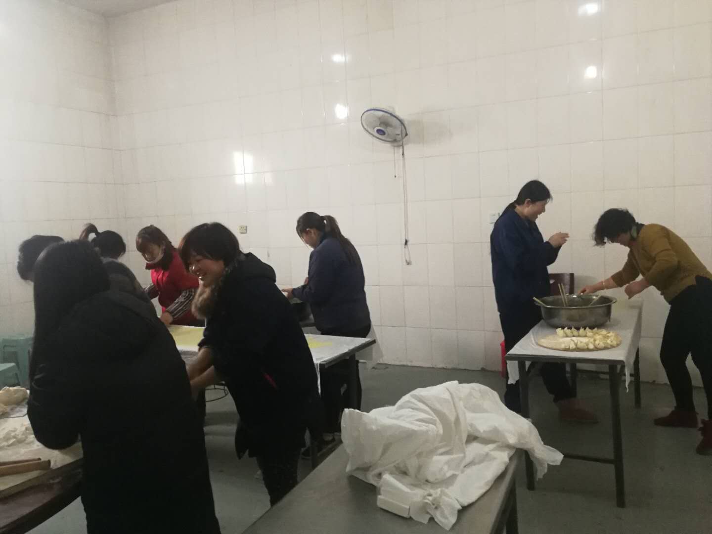 男女老少齊上陣,為生產(chǎn)一線職工包餃子