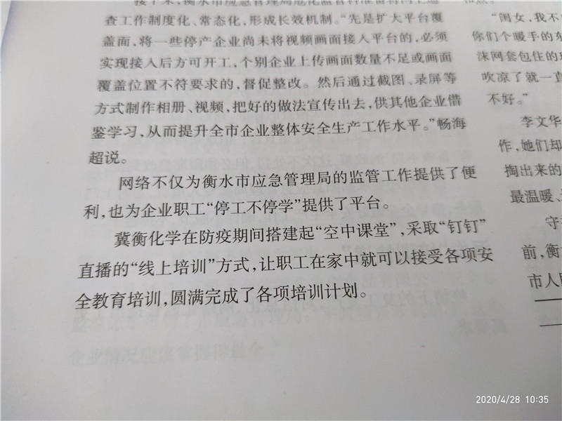 為了在嚴(yán)格落實疫情防控基礎(chǔ)上,全面落實公司2020年度職工安全培訓(xùn)計劃,我公司通過“釘釘”管理平臺的“釘釘直播”方式,大力開展職工安全培訓(xùn),圓滿完成一季度各項培訓(xùn)任務(wù),員工安全操作技能和操作水平都有了明顯的提升,我公司職工安全培訓(xùn)工作也被《河北省安全生產(chǎn)》等省級刊物報道。